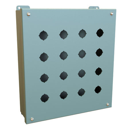 Hammond Part:1435MS Description:Pushbutton Encl - 16 PB x 22.5mm - Steel/Gray