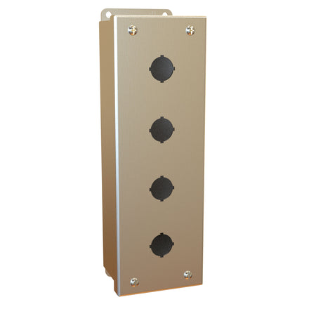 Hammond Part:1435MSSD Description:Pushbutton Encl - 4 PB x 22.5mm - 304 SS